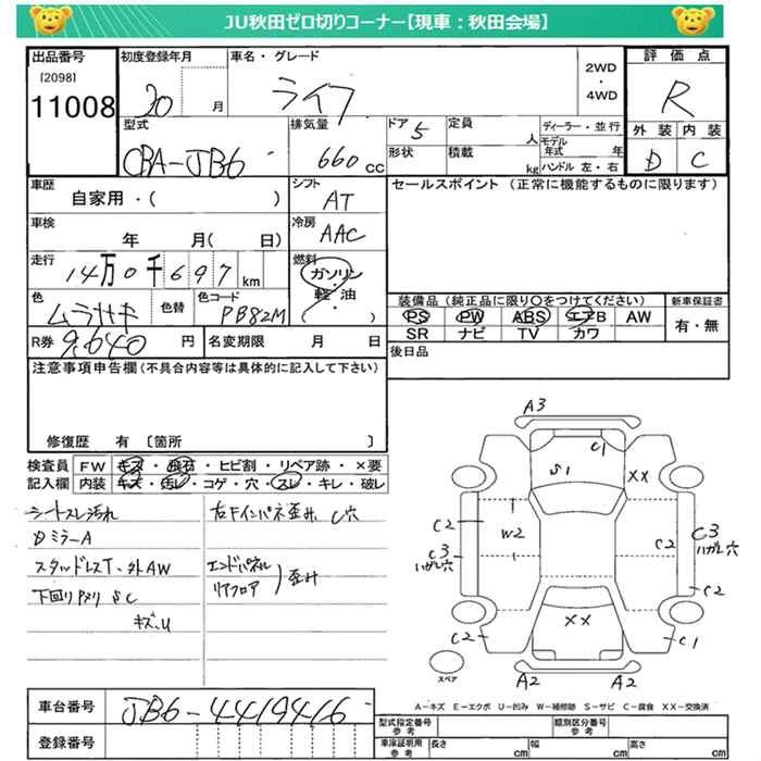 Стартовая цена авто на аукционе 0 ¥