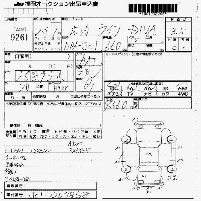 Статус выставлен на аукцион Лот 9261 Аукцион JU Fukuoka Дата аукциона 13.03.2026