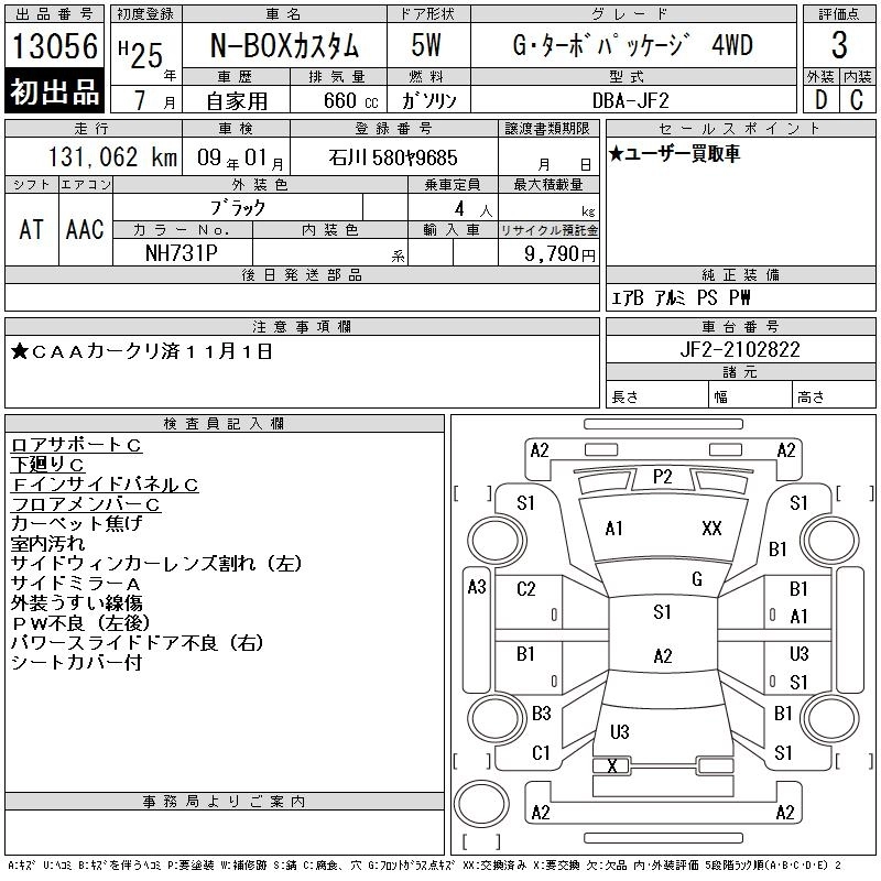 HONDA N BOX CUSTOM 2013 г., лот № 13056