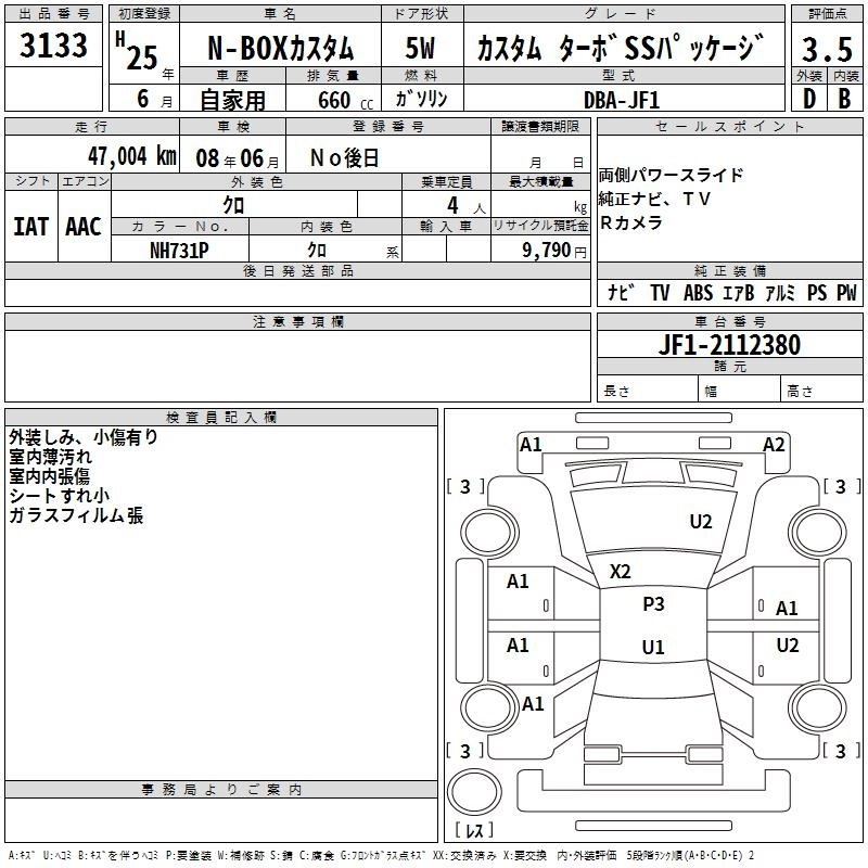 HONDA N BOX CUSTOM 2013 г., лот № 3133