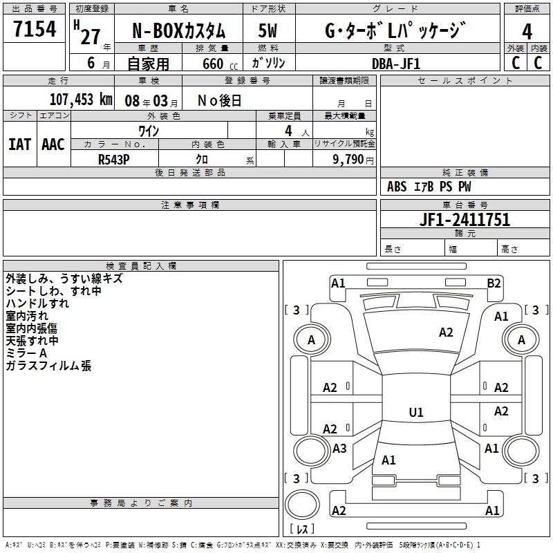 HONDA N BOX CUSTOM 2015 г., лот № 7154