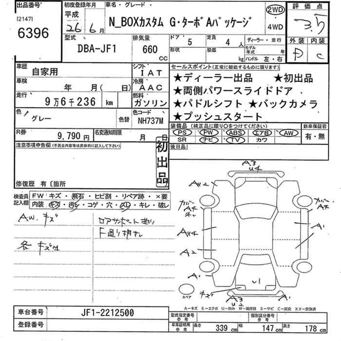 HONDA N BOX CUSTOM 2014 г., лот № 6396
