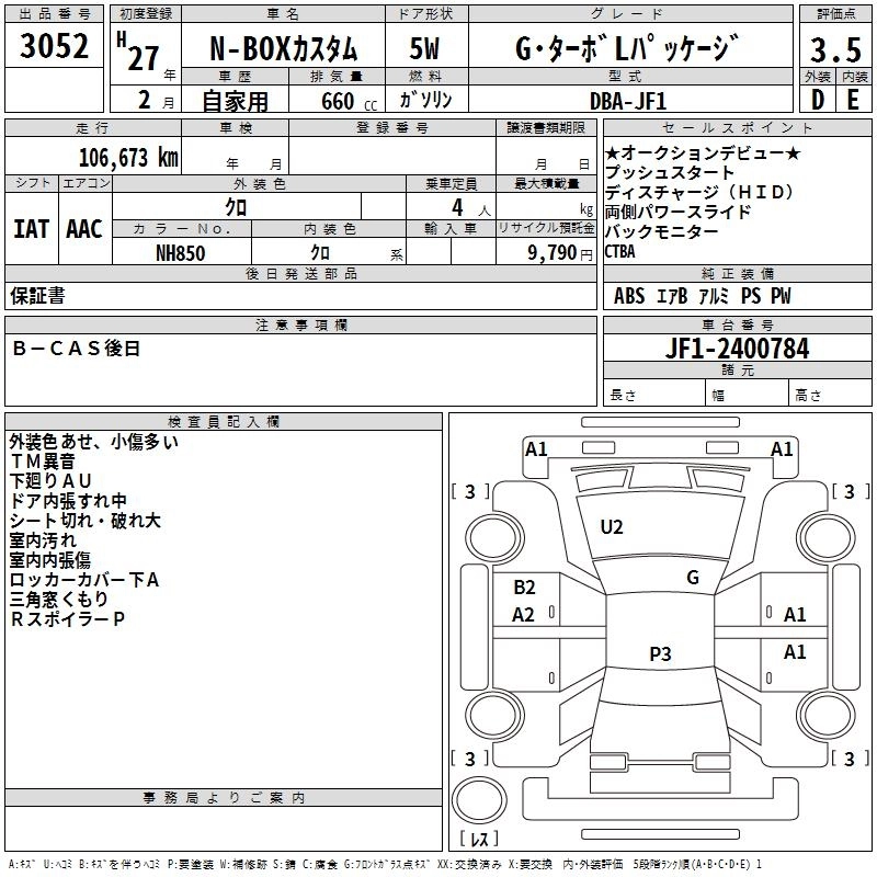 HONDA N BOX CUSTOM 2015 г., лот № 3052