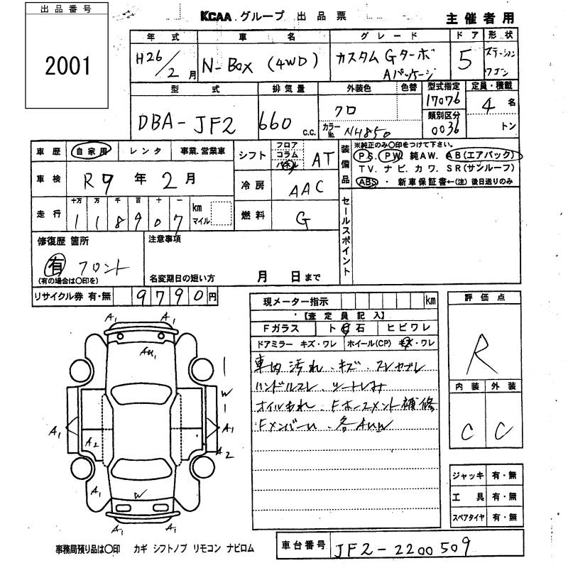 HONDA N BOX CUSTOM 2014 г., лот № 2001