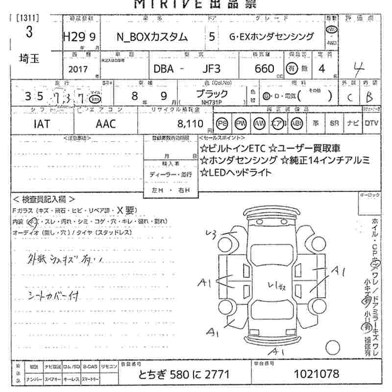 HONDA N BOX CUSTOM 2017 г., лот № 3