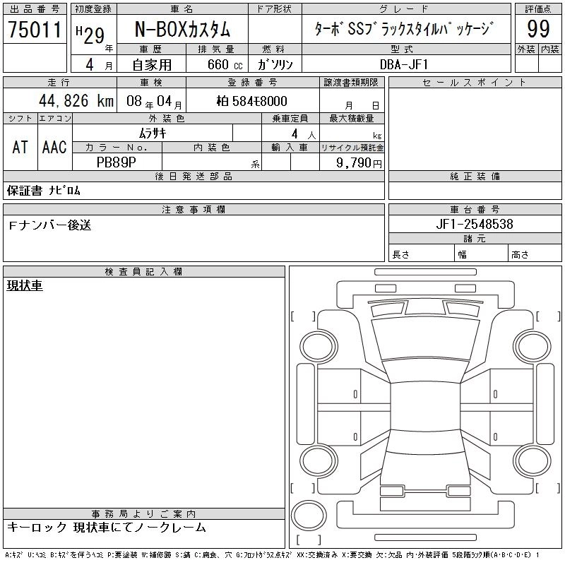 HONDA N BOX CUSTOM 2017 г., лот № 75011