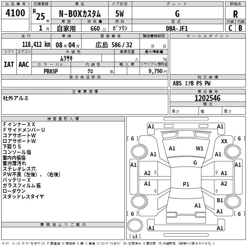 HONDA N BOX CUSTOM 2013 г., лот № 4100