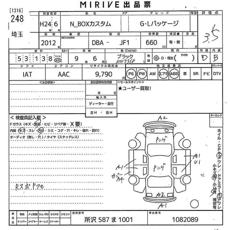 HONDA N BOX CUSTOM 2012 г., лот № 248