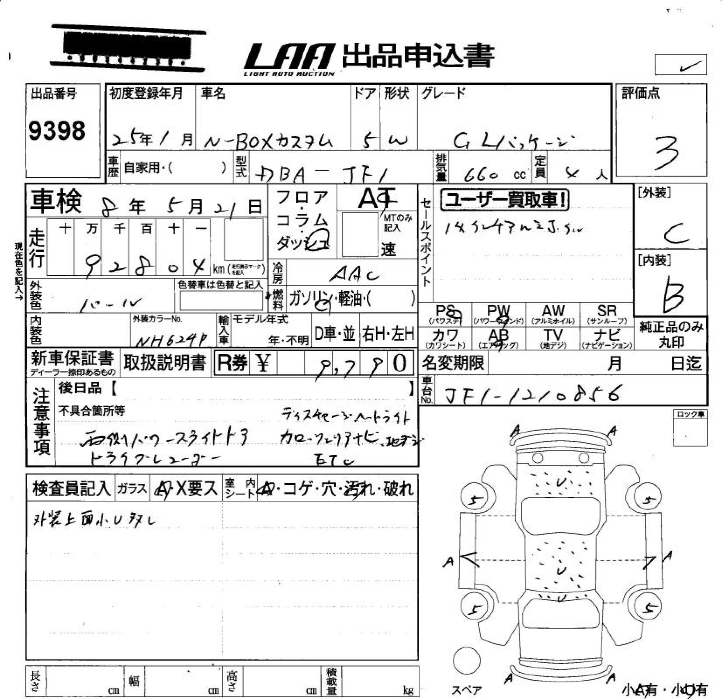 HONDA N BOX CUSTOM 2013 г., лот № 9398