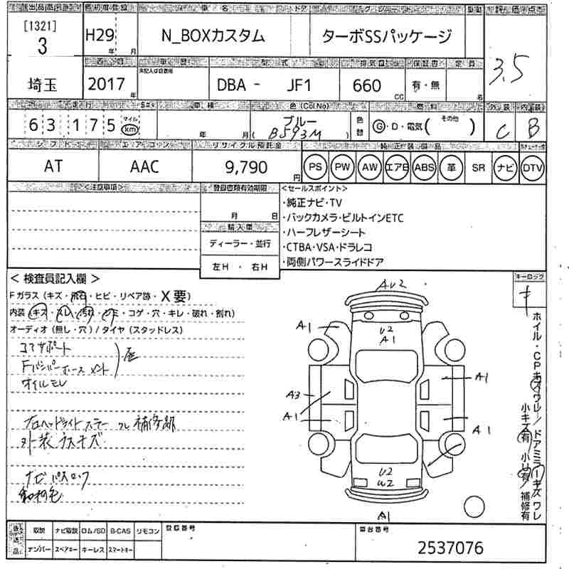 HONDA N BOX CUSTOM 2017 г., лот № 3