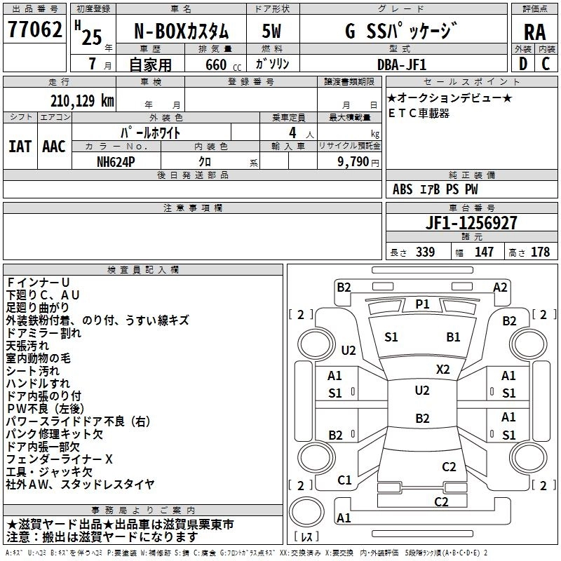 HONDA N BOX CUSTOM 2013 г., лот № 77062