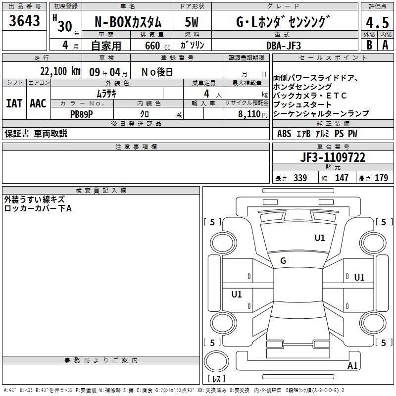 HONDA N BOX CUSTOM 2018 г., лот № 3643