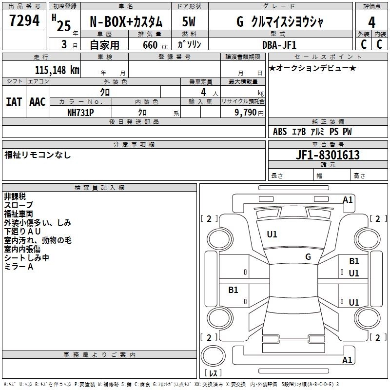 HONDA N BOX+CUSTOM 2013 г., лот № 7294