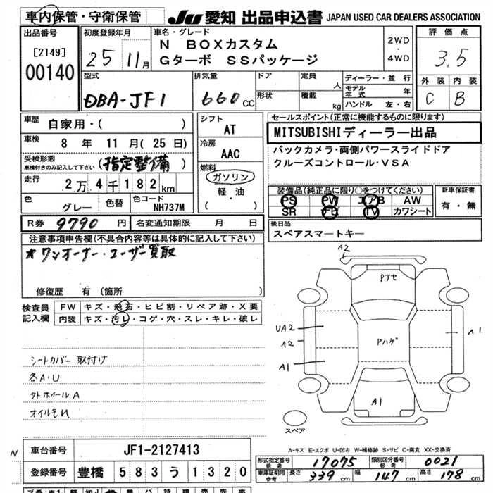 HONDA N BOX CUSTOM 2013 г., лот № 140