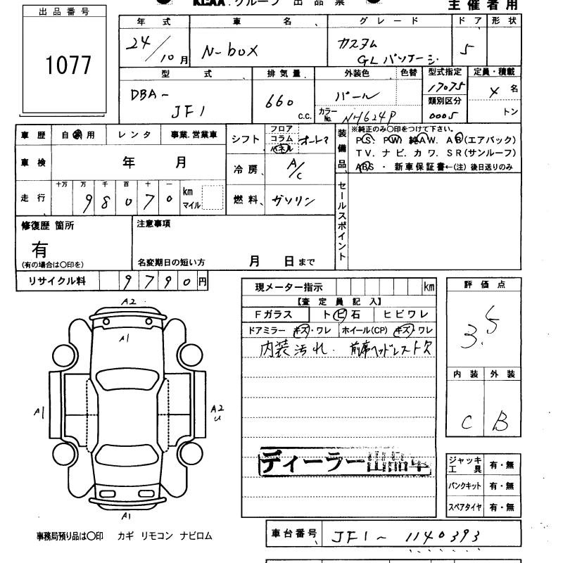 HONDA N BOX CUSTOM 2012 г., лот № 1077