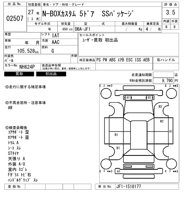 HONDA N BOX CUSTOM 2015 г., лот № 2507