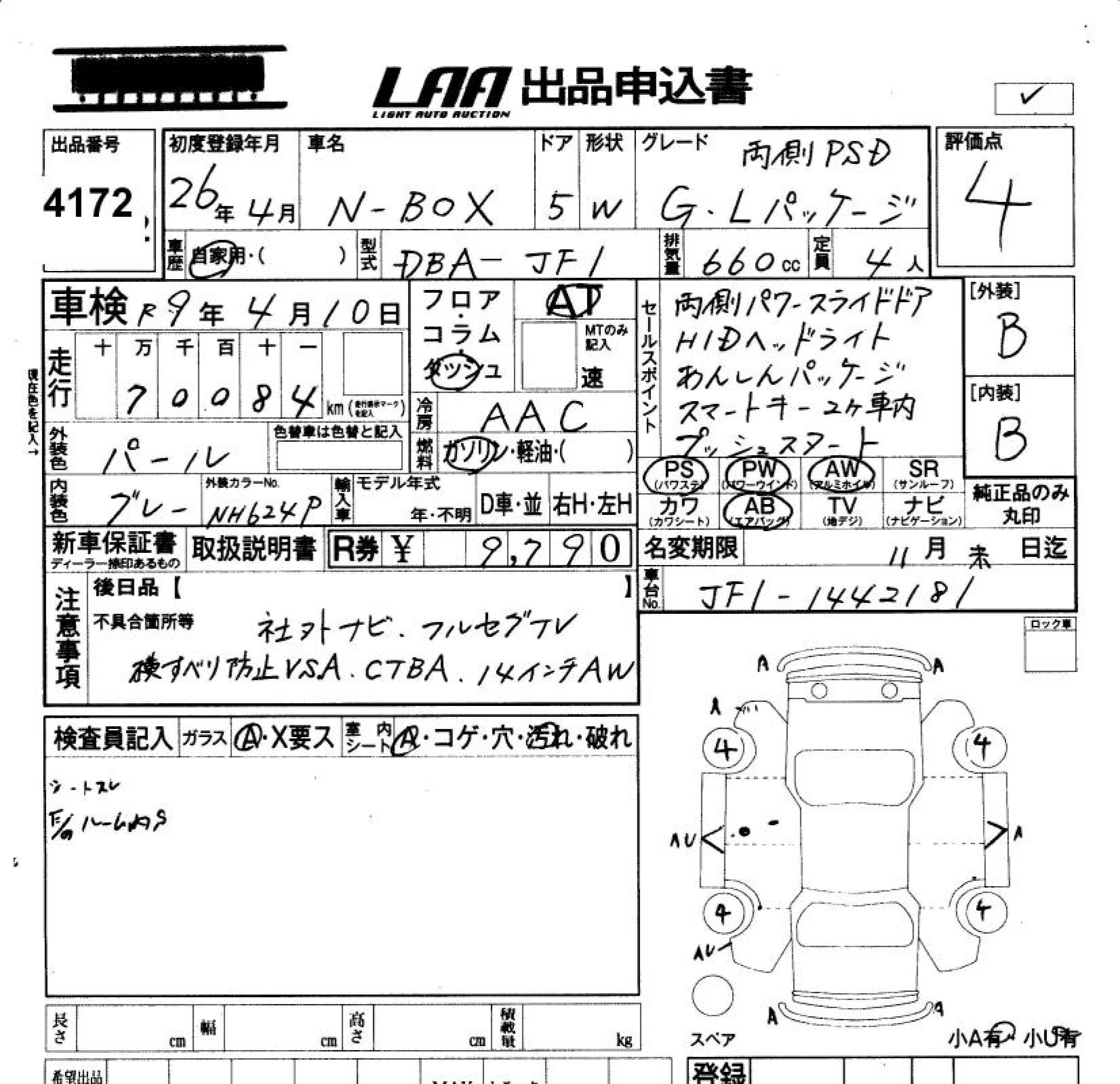 HONDA N BOX 2014 г., лот № 4172