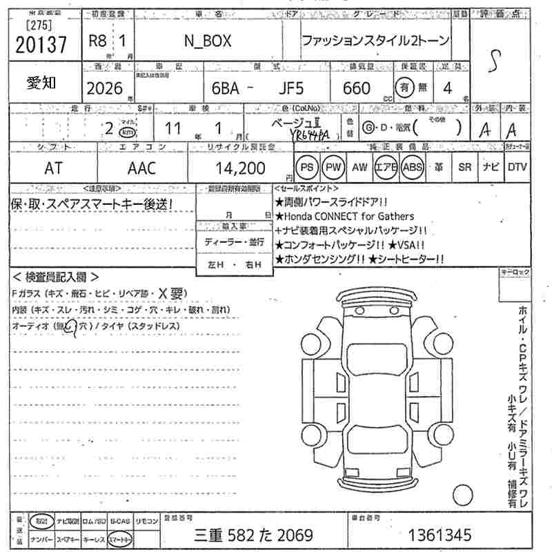 HONDA N BOX 2026 г., лот № 20137