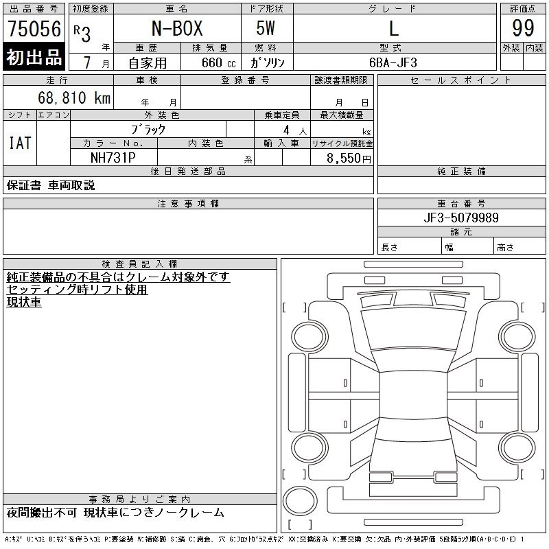 Статус выставлен на аукцион Лот 75056 Аукцион CAA Chubu Дата аукциона 11.03.2026