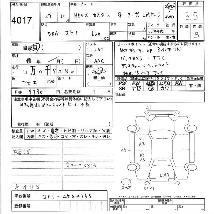 HONDA N BOX 2015 г., лот № 4017