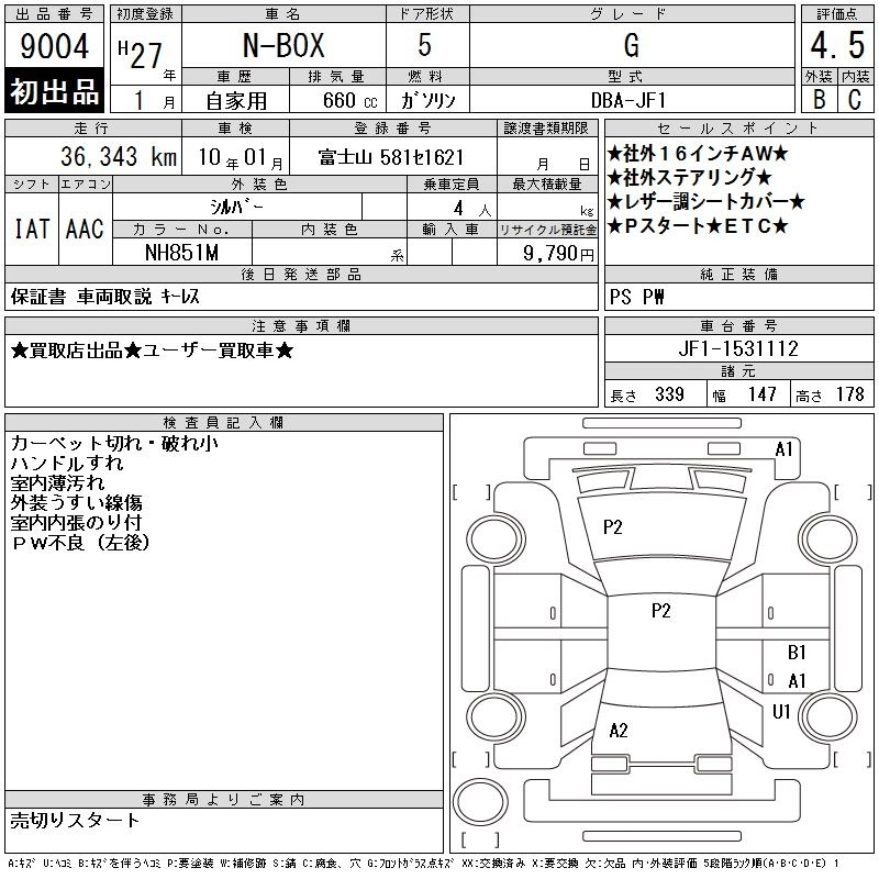 Статус выставлен на аукцион Лот 9004 Аукцион CAA Chubu Дата аукциона 11.03.2026
