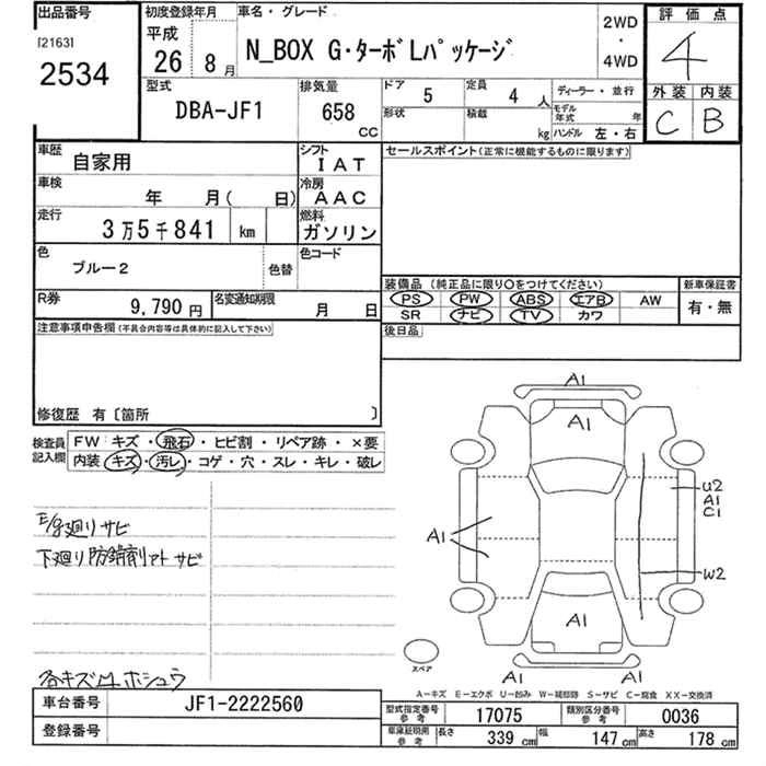 HONDA N BOX 2014 г., лот № 2534