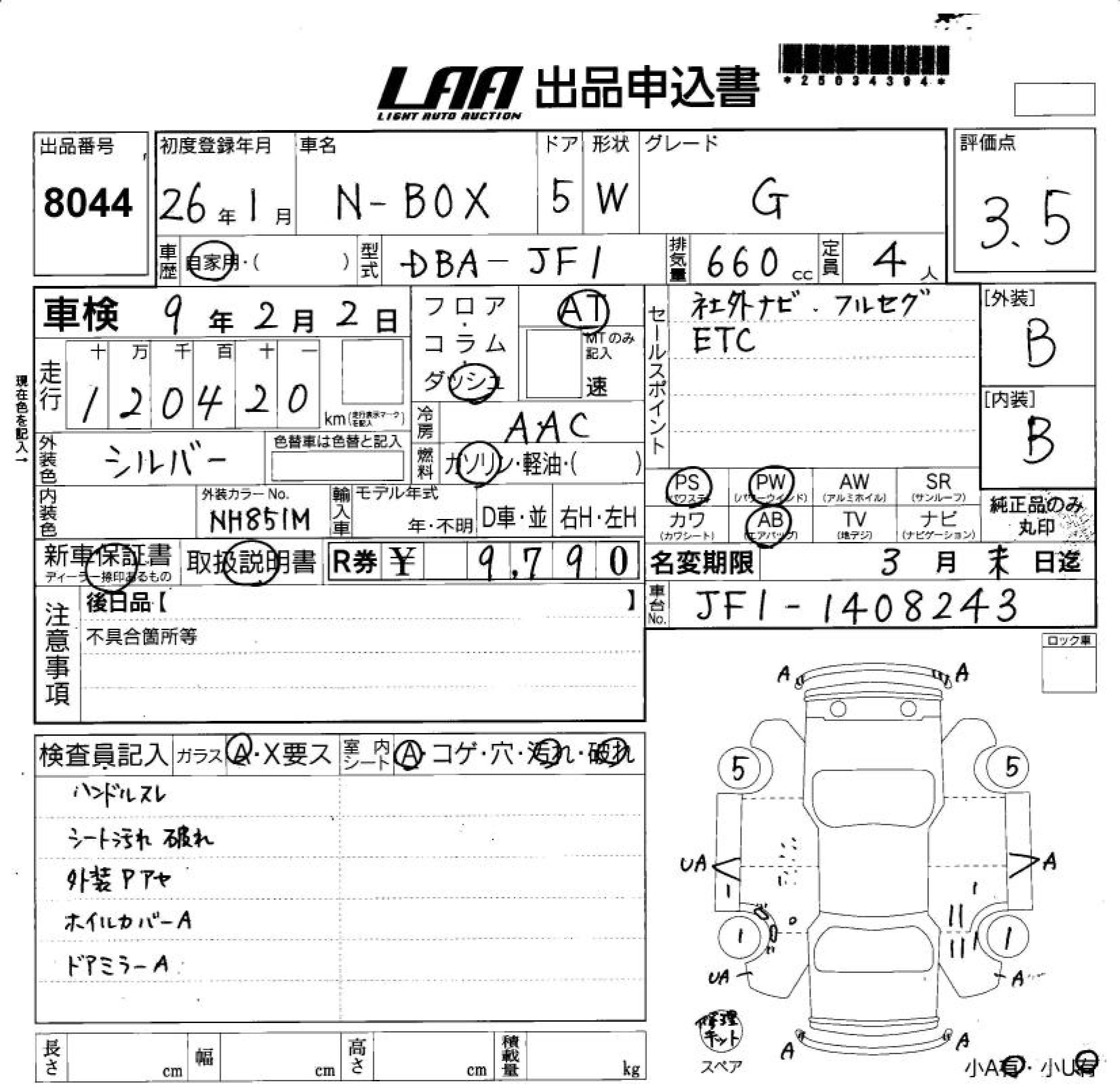 HONDA N BOX 2014 г., лот № 8044