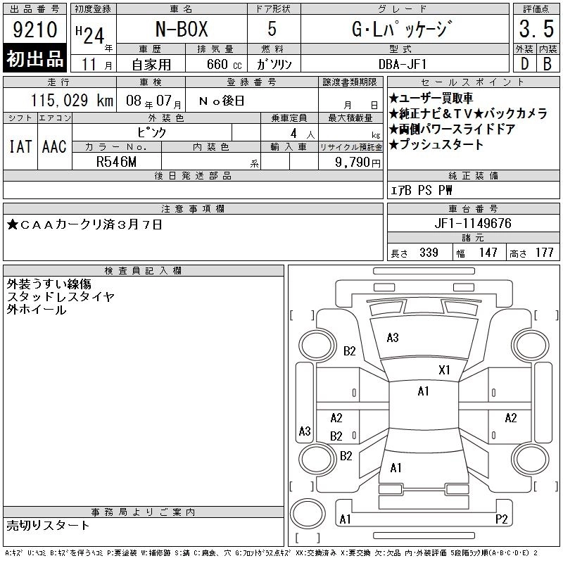 Статус выставлен на аукцион Лот 9210 Аукцион CAA Chubu Дата аукциона 11.03.2026