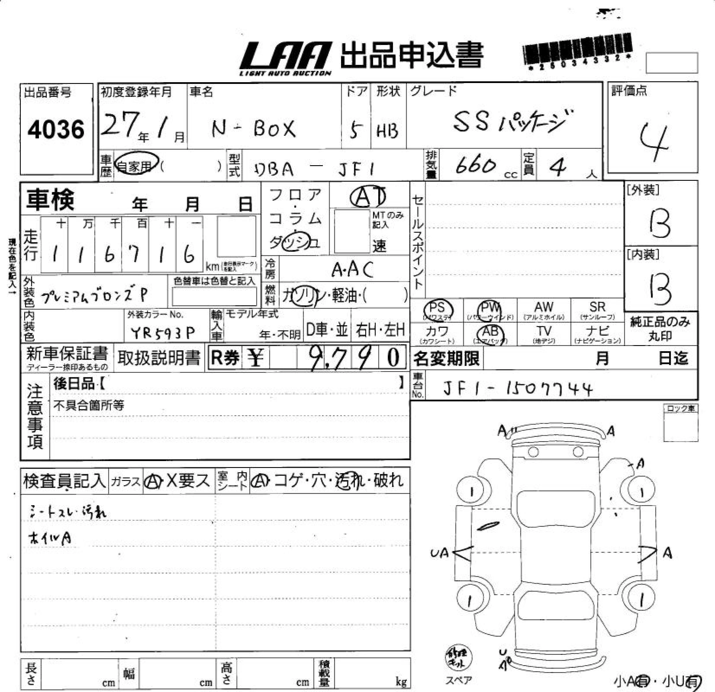 HONDA N BOX 2015 г., лот № 4036