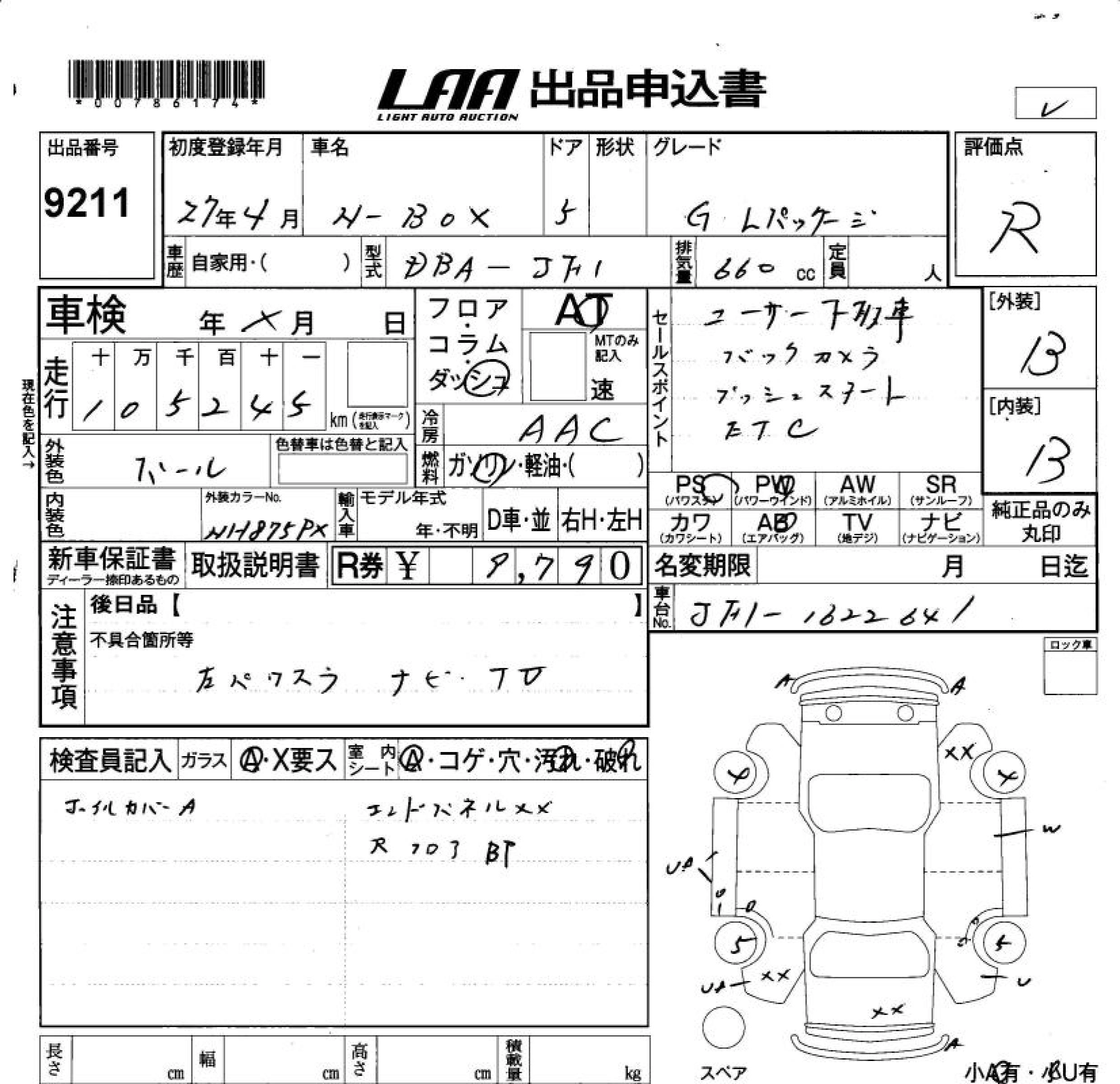Статус выставлен на аукцион Лот 9211 Аукцион LAA Okayama Дата аукциона 13.03.2026