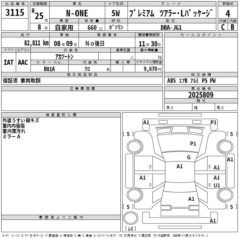 HONDA N-ONE 2013 г., лот № 3115