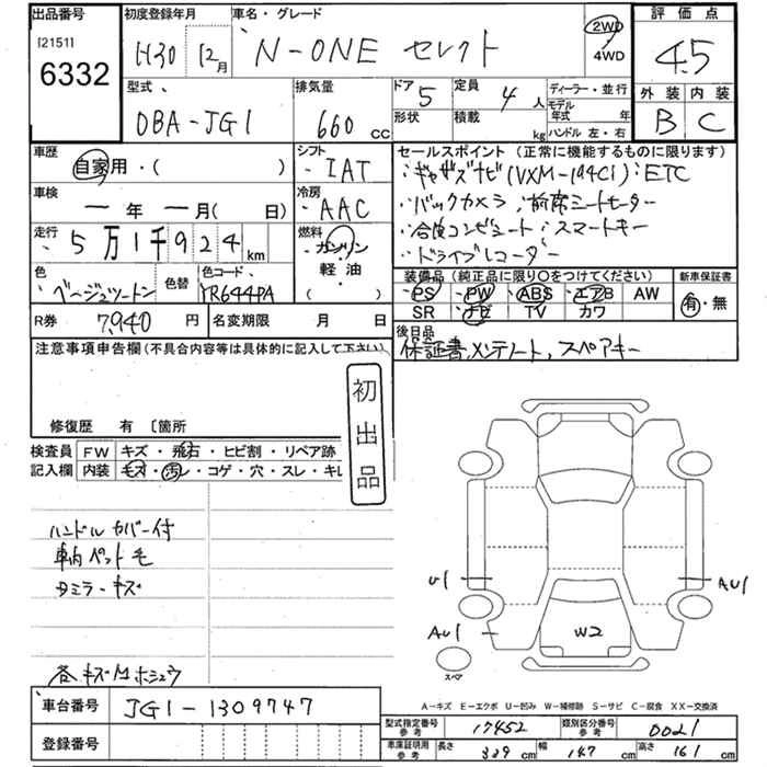 HONDA N-ONE 2018 г., лот № 6332