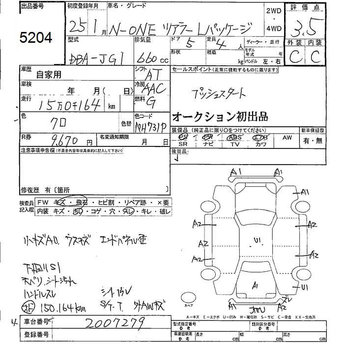 HONDA N-ONE 2013 г., лот № 5204