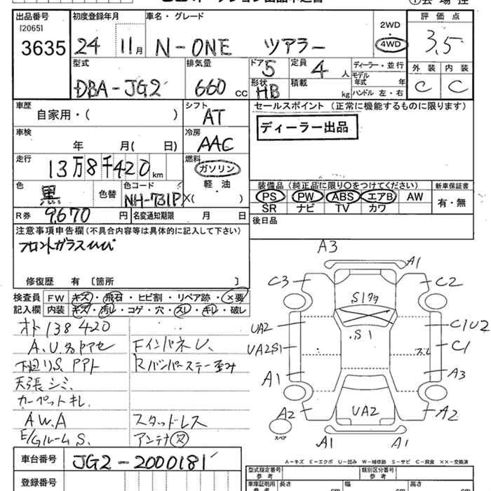 HONDA N-ONE 2012 г., лот № 3635