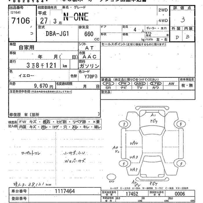 HONDA N-ONE 2015 г., лот № 7106