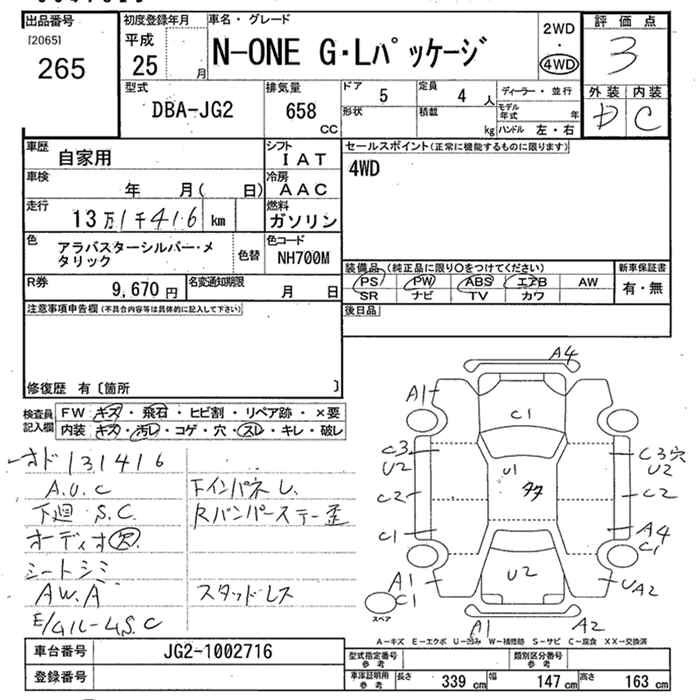 HONDA N-ONE 2013 г., лот № 265
