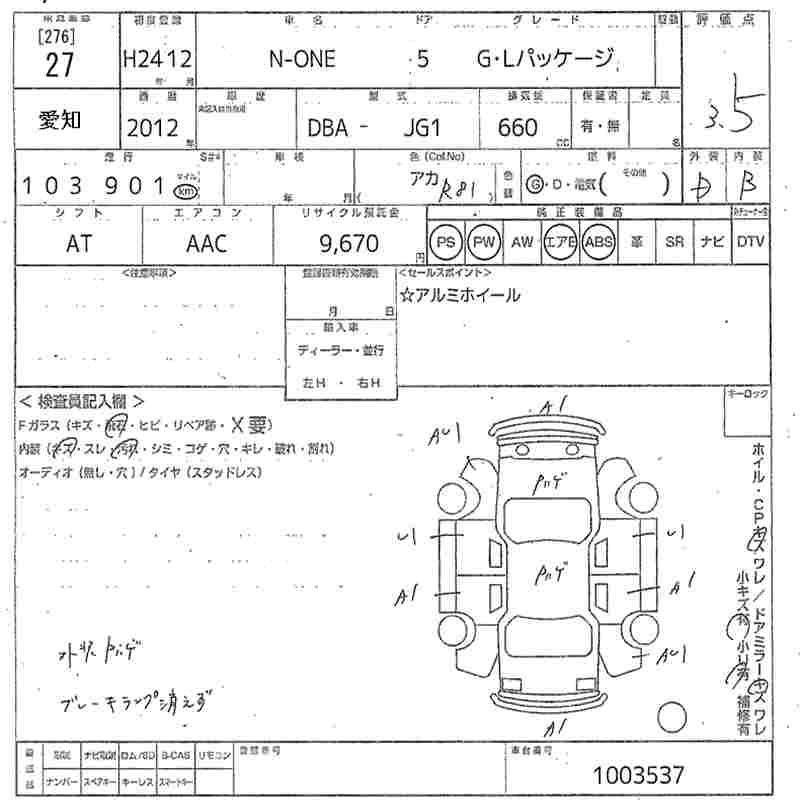 HONDA N-ONE 2012 г., лот № 27