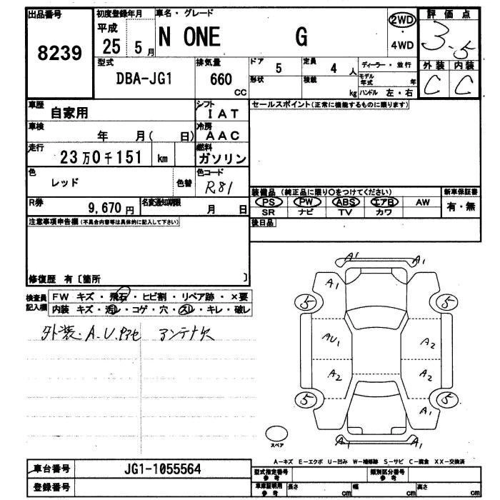 HONDA N-ONE 2013 г., лот № 8239
