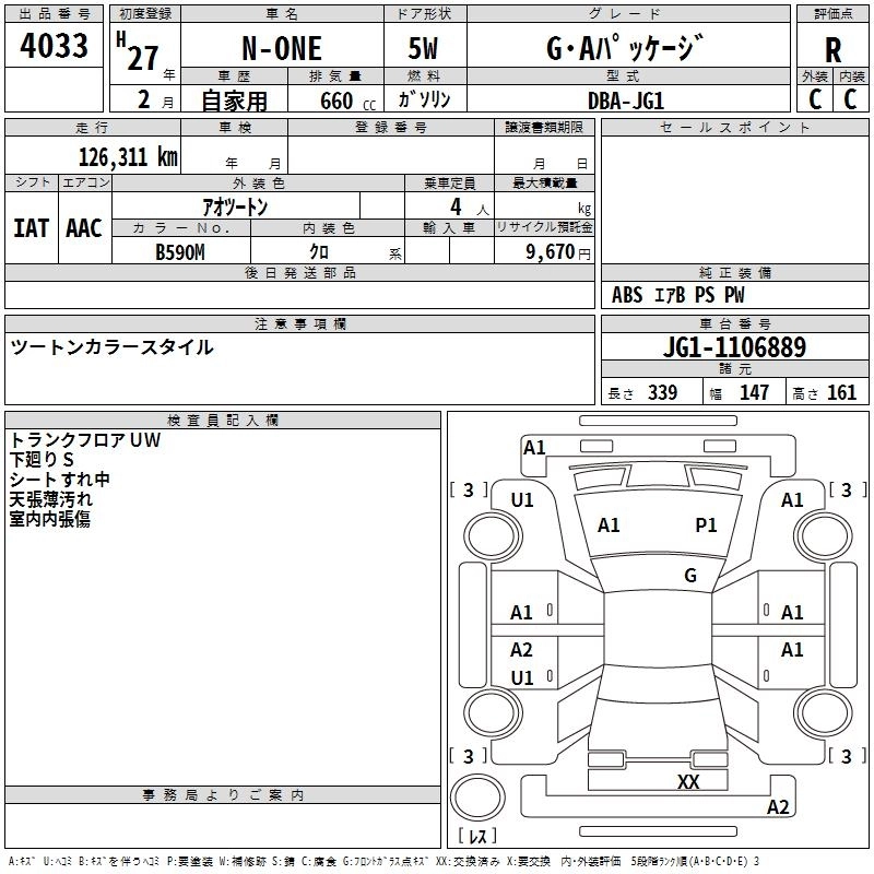 HONDA N-ONE 2015 г., лот № 4033