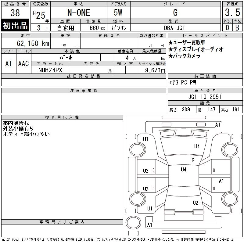 HONDA N-ONE 2013 г., лот № 38