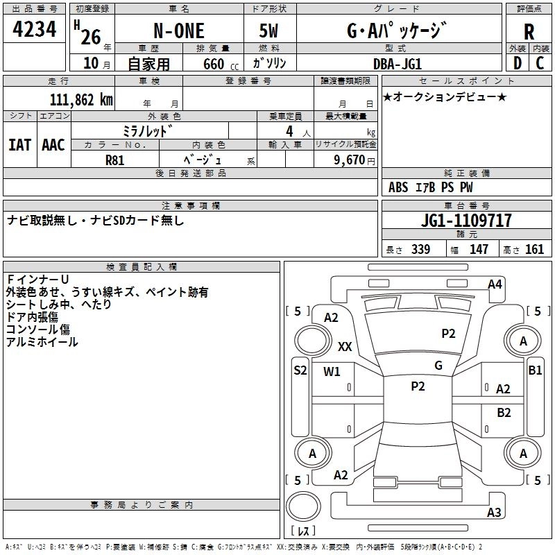 HONDA N-ONE 2014 г., лот № 4234