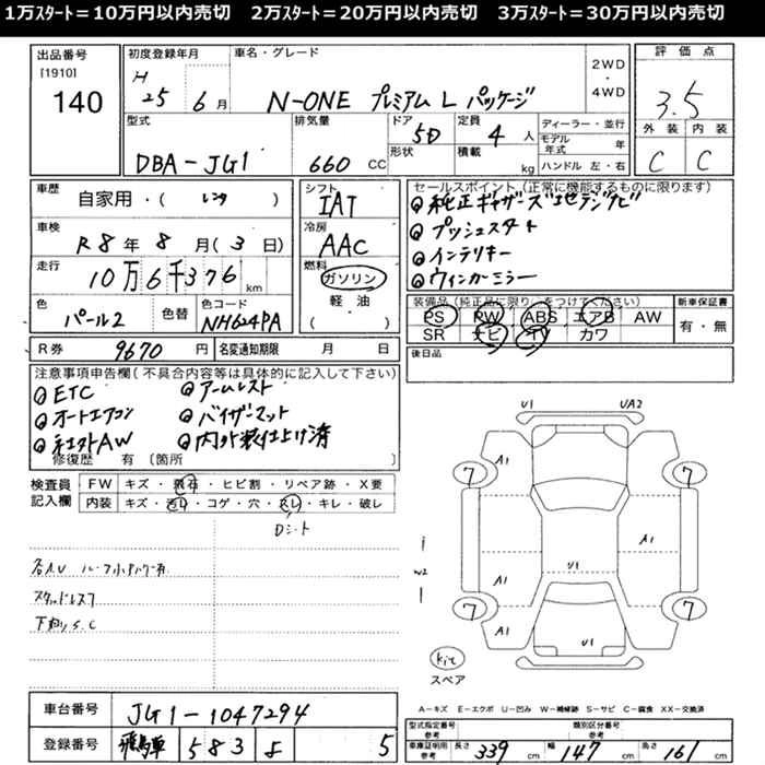 HONDA N-ONE 2013 г., лот № 140