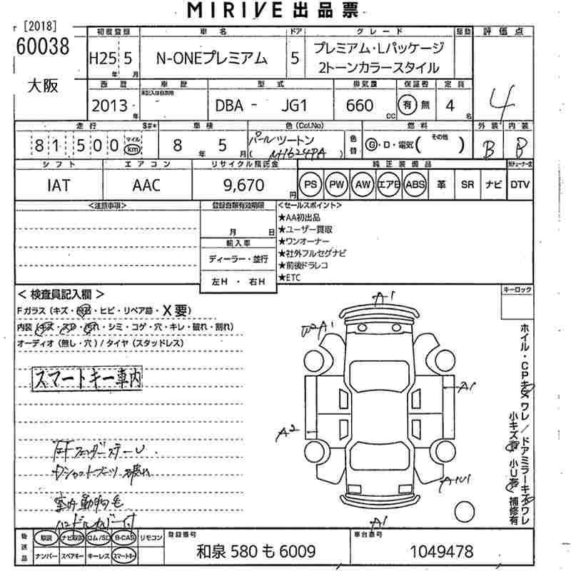 HONDA N-ONE 2013 г., лот № 60038