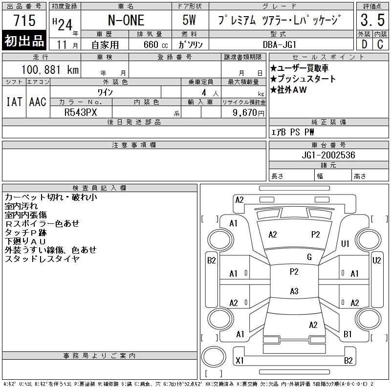 HONDA N-ONE 2012 г., лот № 715