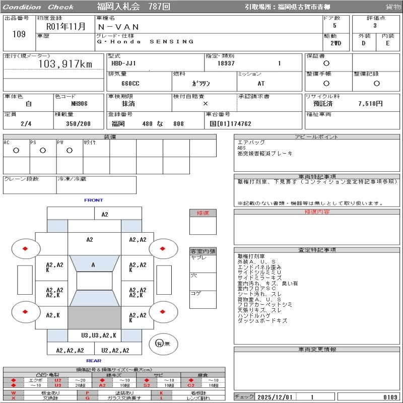 Статус выставлен на аукцион Лот 109 Аукцион ORIX Fukuoka Дата аукциона 09.12.2025