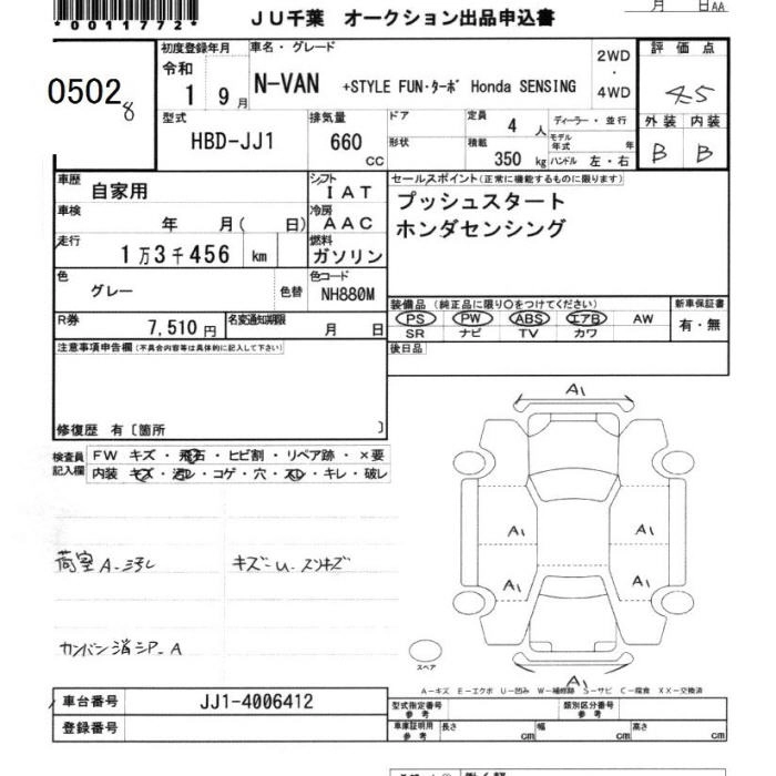 HONDA N-VAN 2019 г., лот № 502