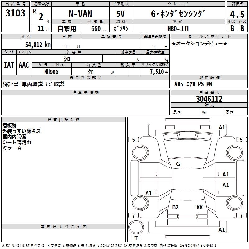 HONDA N-VAN 2020 г., лот № 3103
