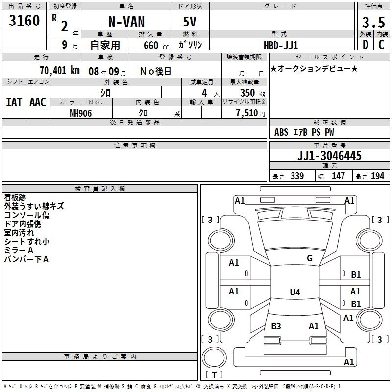 HONDA N-VAN 2020 г., лот № 3160