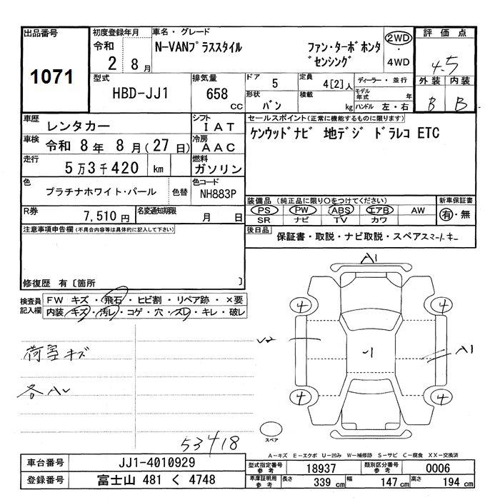 Статус выставлен на аукцион Лот 1071 Аукцион JU Shizuoka Дата аукциона 10.03.2026