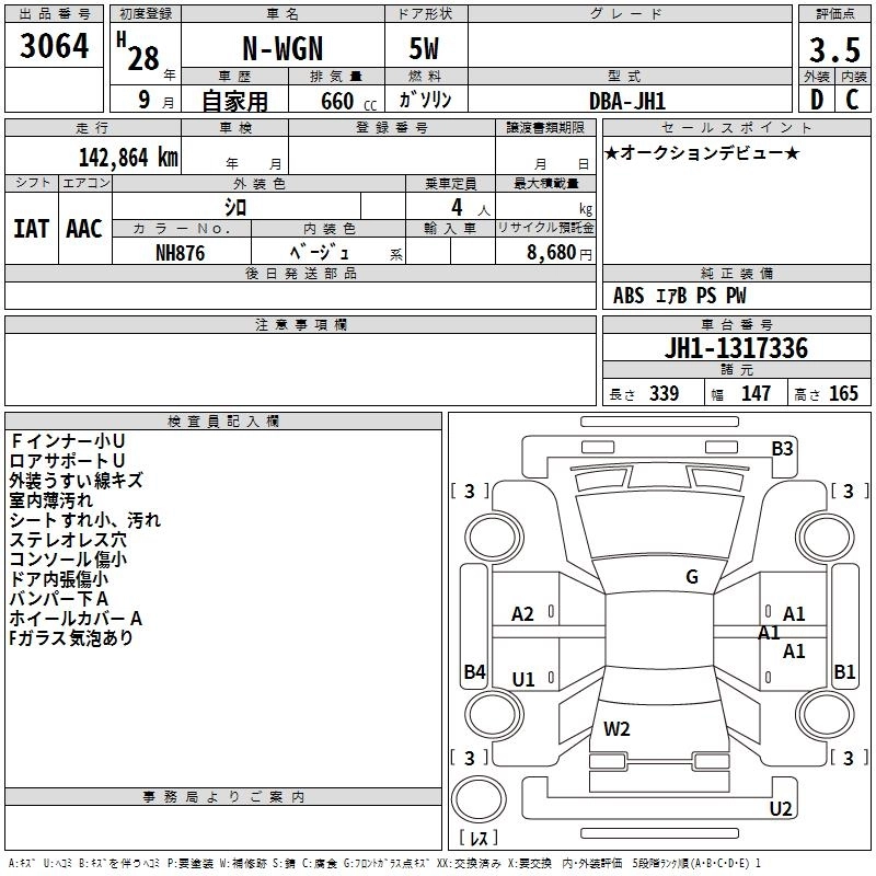 HONDA N-WGN 2016 г., лот № 3064